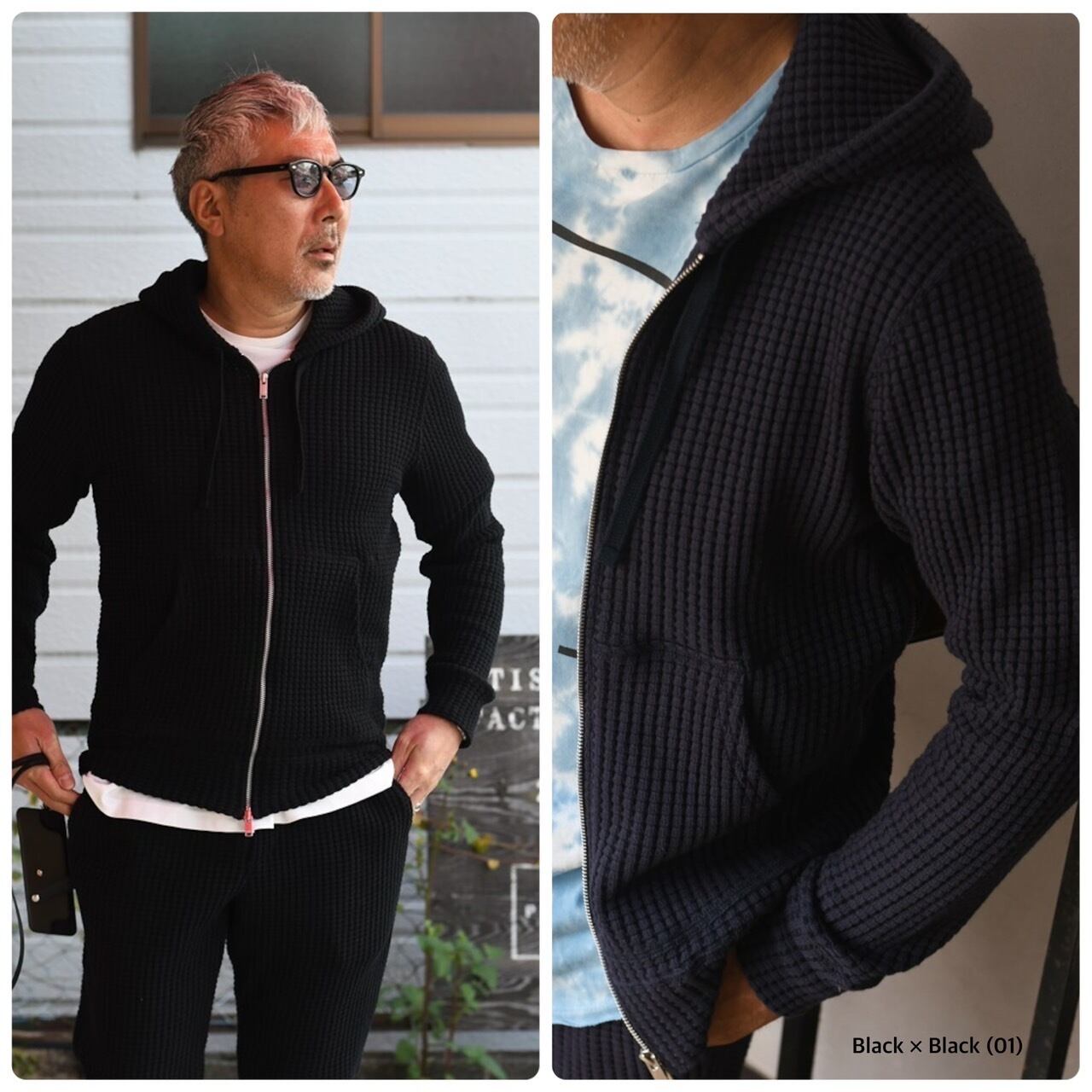 SEA GREEN BIG WAFFLE ZIPパーカー BLACK